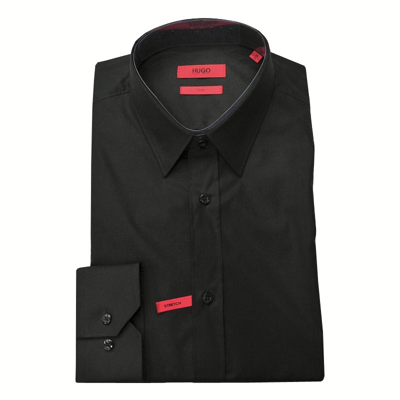 HUGO ELISHA EXTRA SLIM FIT SHIRT IN STRETCH COTTON -BLACK