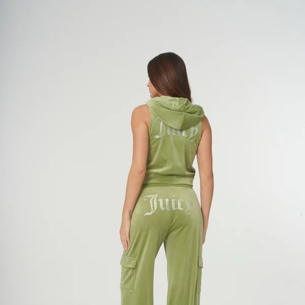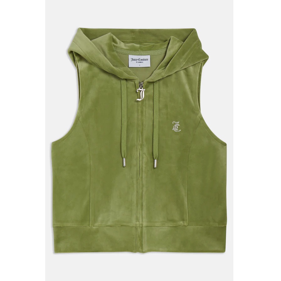 JUICY COUTURE MOSSTONE DIAMANTE VELOUR ZIP-THROUGH GILET