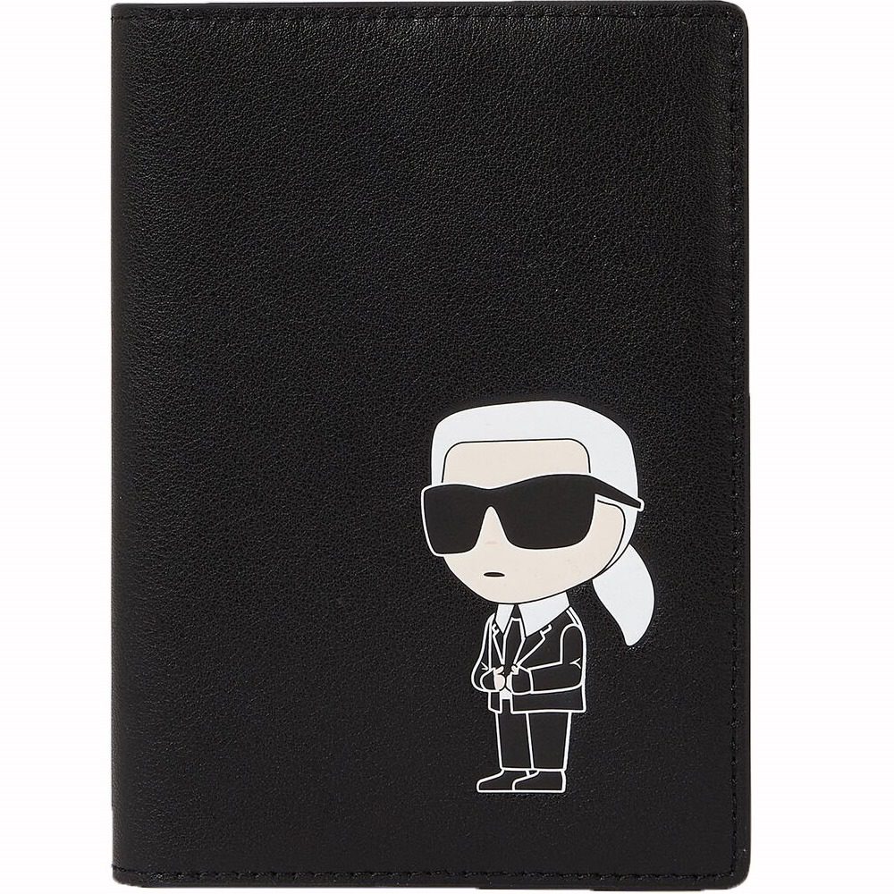 KARL LAGERFELD MEN K/IKONIK 2.0 LEATHER PASSPORT CASE BLACK