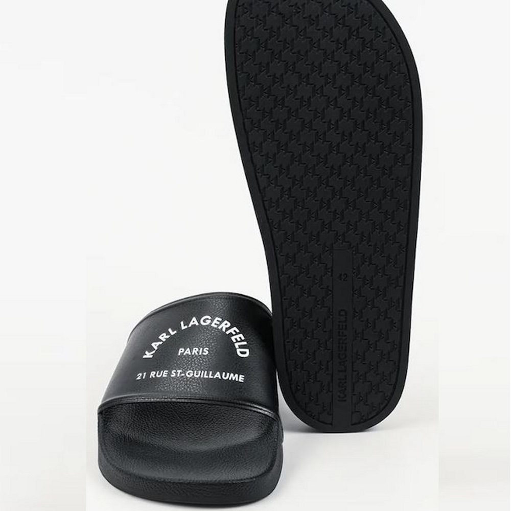Karl Lagerfeld men’s slippers are a shoe that is easy to wear, combining comfort with a recognizable design. This model, in classic black and with the characteristic logo, is a distinctive element for urban looks and is ideal for summer getaways. The design reflects a modern approach to fashion, offering comfort and aesthetics. Karl Lagerfeld slippers – what makes them stand out? The slip-on design facilitates quick application, ideal for urban looks The casual style combines perfectly with various summer outfits The open toe allows free ventilation of the foot, offering comfort The lightweight construction of the shoe allows comfortable use for a long time The characteristic Karl Lagerfeld logo gives the shoe a recognizable character The smooth texture of the upper highlights the minimal and modern design