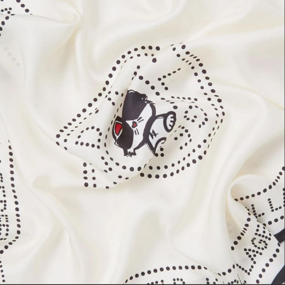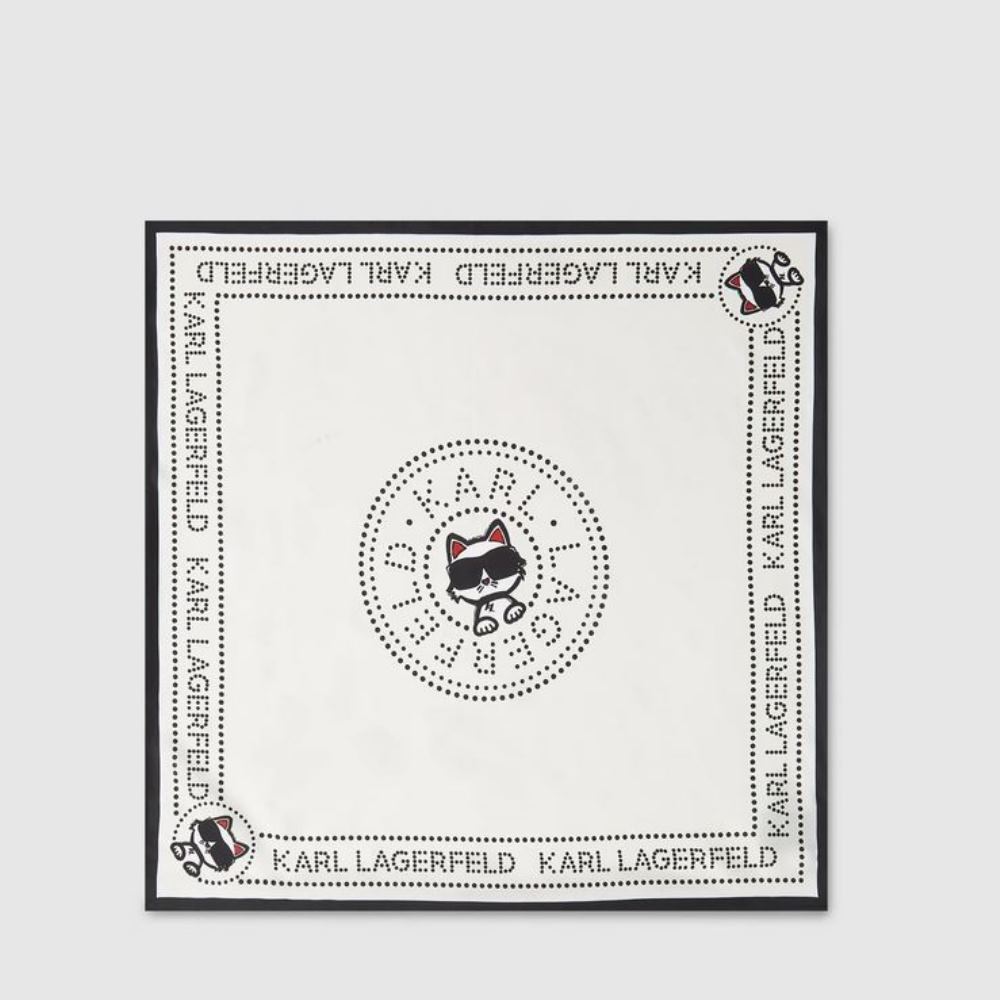 Silky softness meets iconic artistry in this square scarf, featuring the signature Choupette motif and KARL LAGERFELD logo—effortless elegance with versatile styling options.