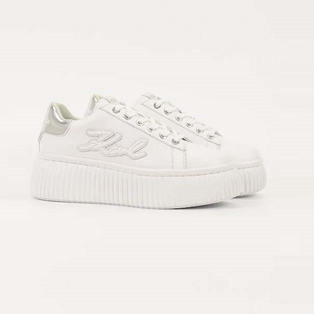 KARL LAGERFELD WOMEN’S SNEAKERS KREEPER LO SIGNIA EMBRO PATCH WHITE