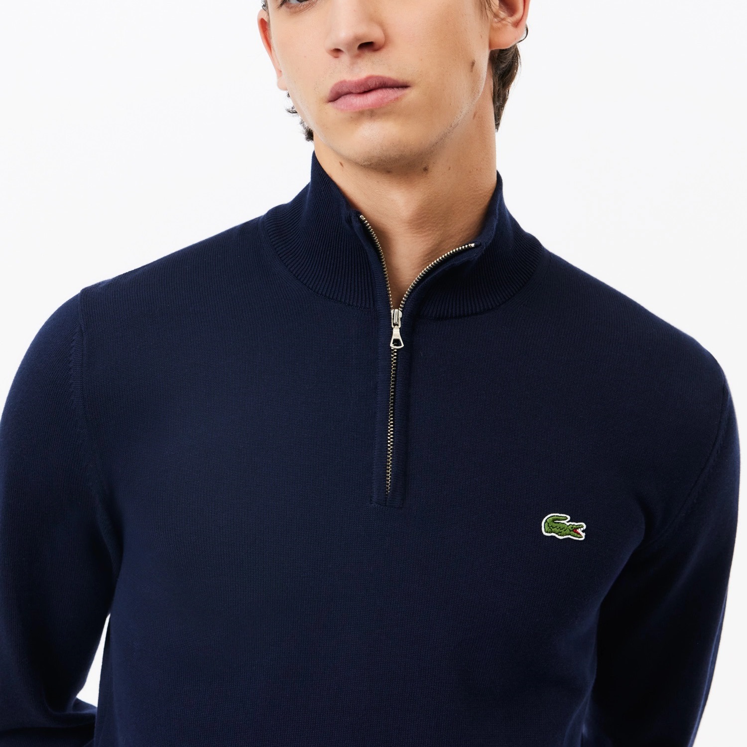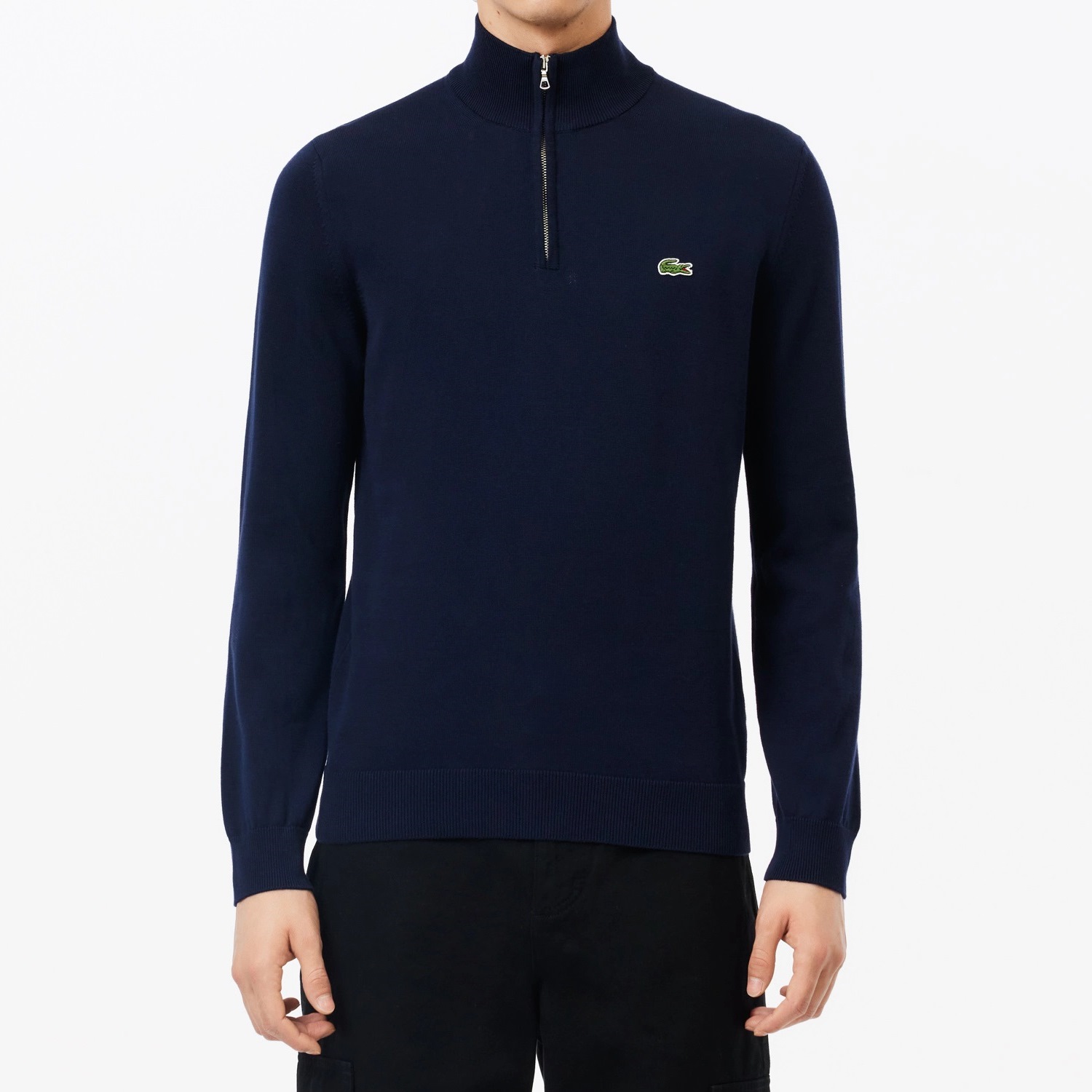LACOSTE MEN’S HIGH ZIPPED NECK PLAIN COTTON SWEATER NAVY BLUE