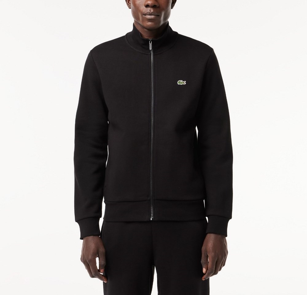 LACOSTE MEN’S REGULAR FIT BRUSHED FLEECE ZIPPERED SWEATSHIRT NOIR