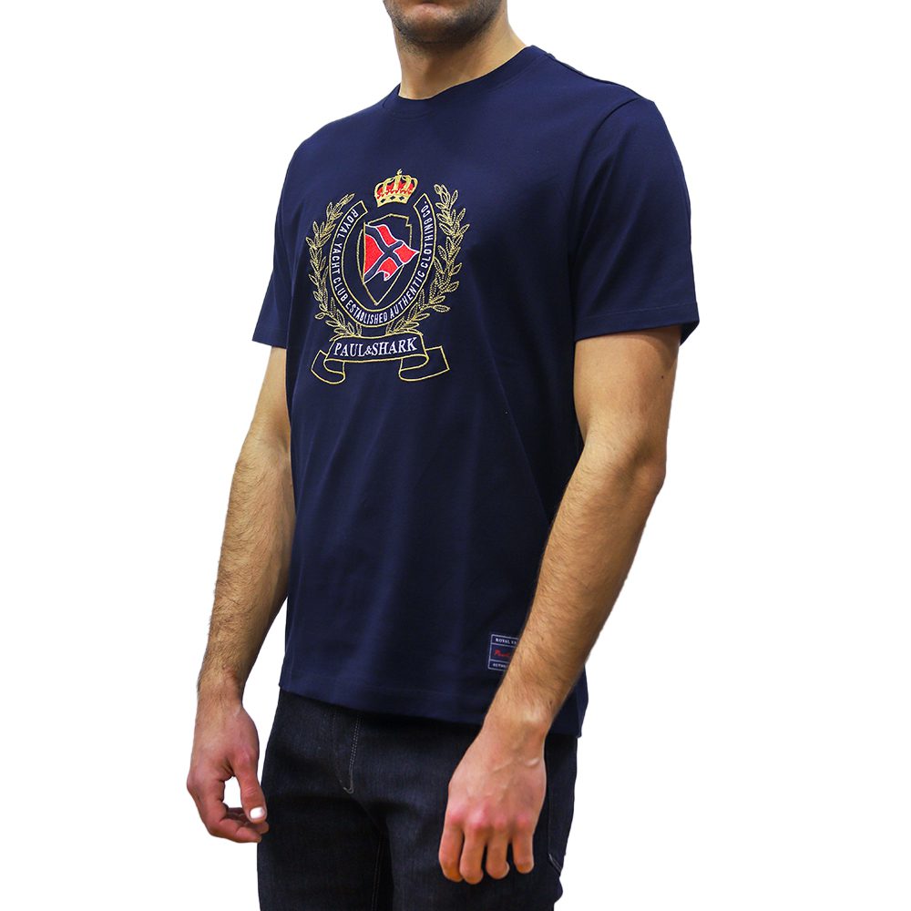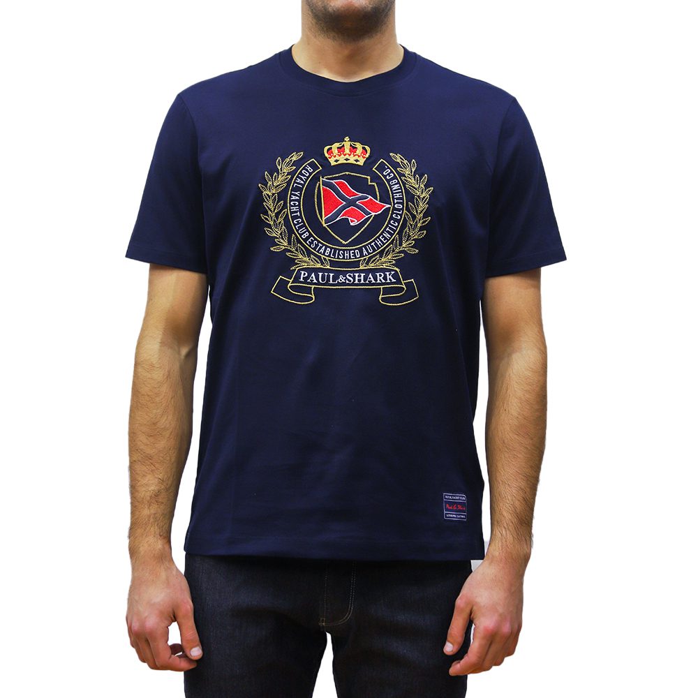 PAUL&SHARK MEN COTTON T-SHIRT WITH BADGE LOGO NAVY