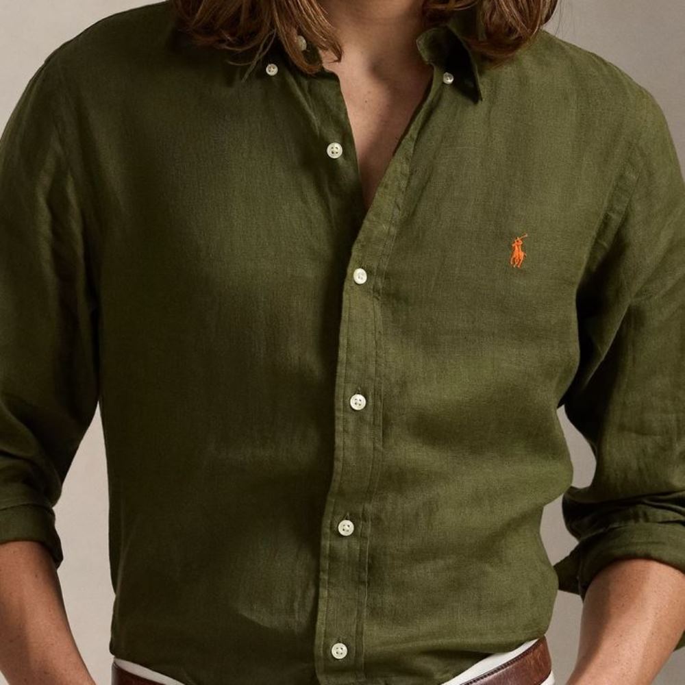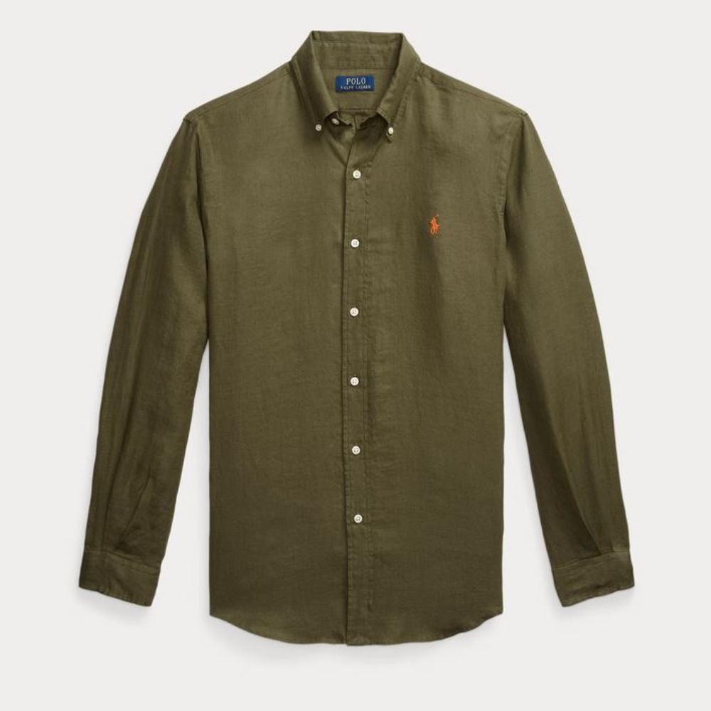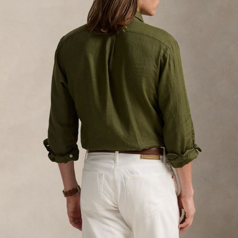 POLO RALPH LAUREN CUSTOM FIT LINEN SHIRT NEW OLIVE