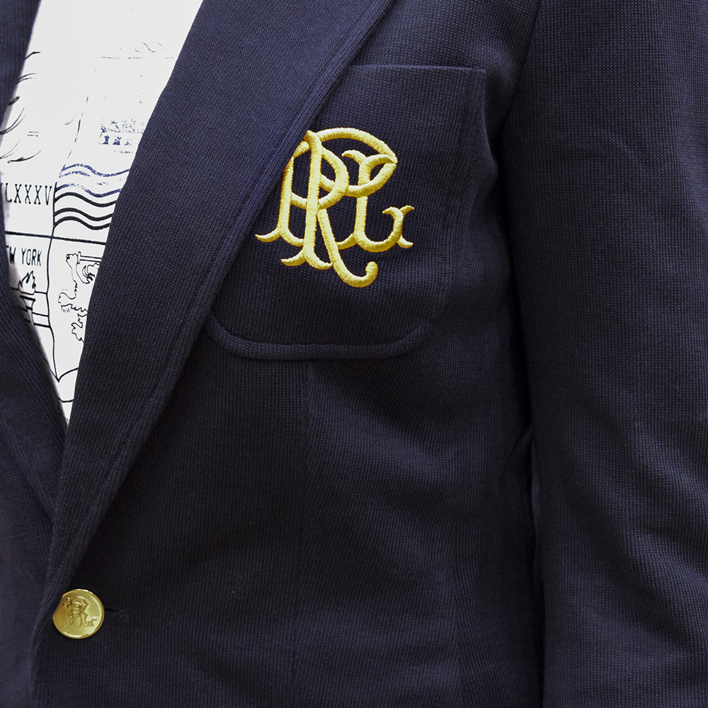 POLO RALPH LAUREN DOUBLE KIN JACQUARD BLAZER JACKET PARK AVENUE NAVY