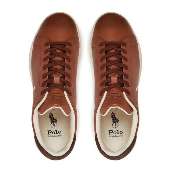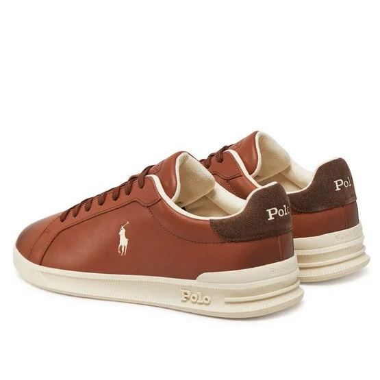 POLO RALPH LAUREN MEN HERITAGE COURT II LEATHER SNEAKER TAN/ECRU