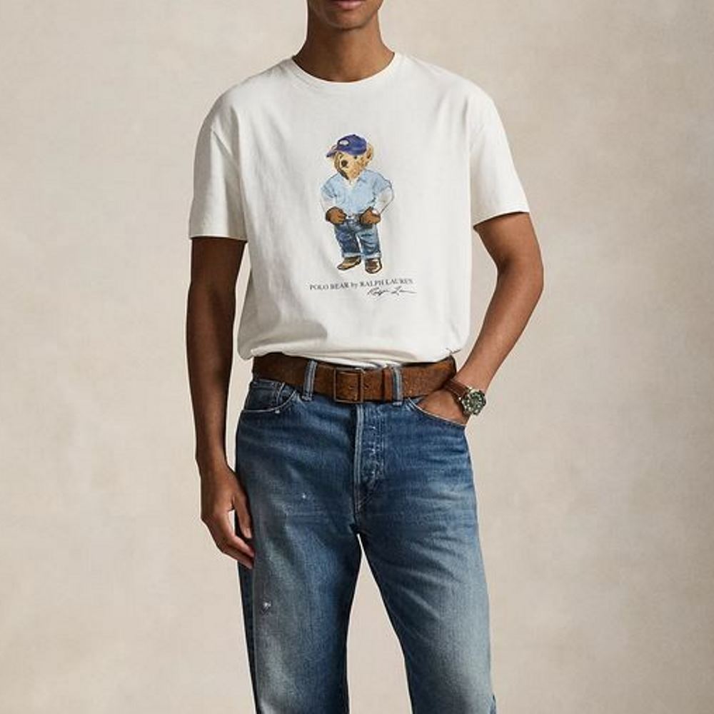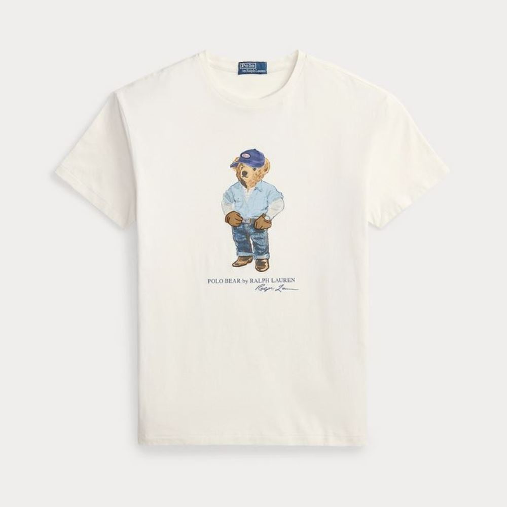 POLO RALPH LAUREN MEN’S CLASSIC FIT POLO BEAR JERSEY T-SHIRT WHITE
