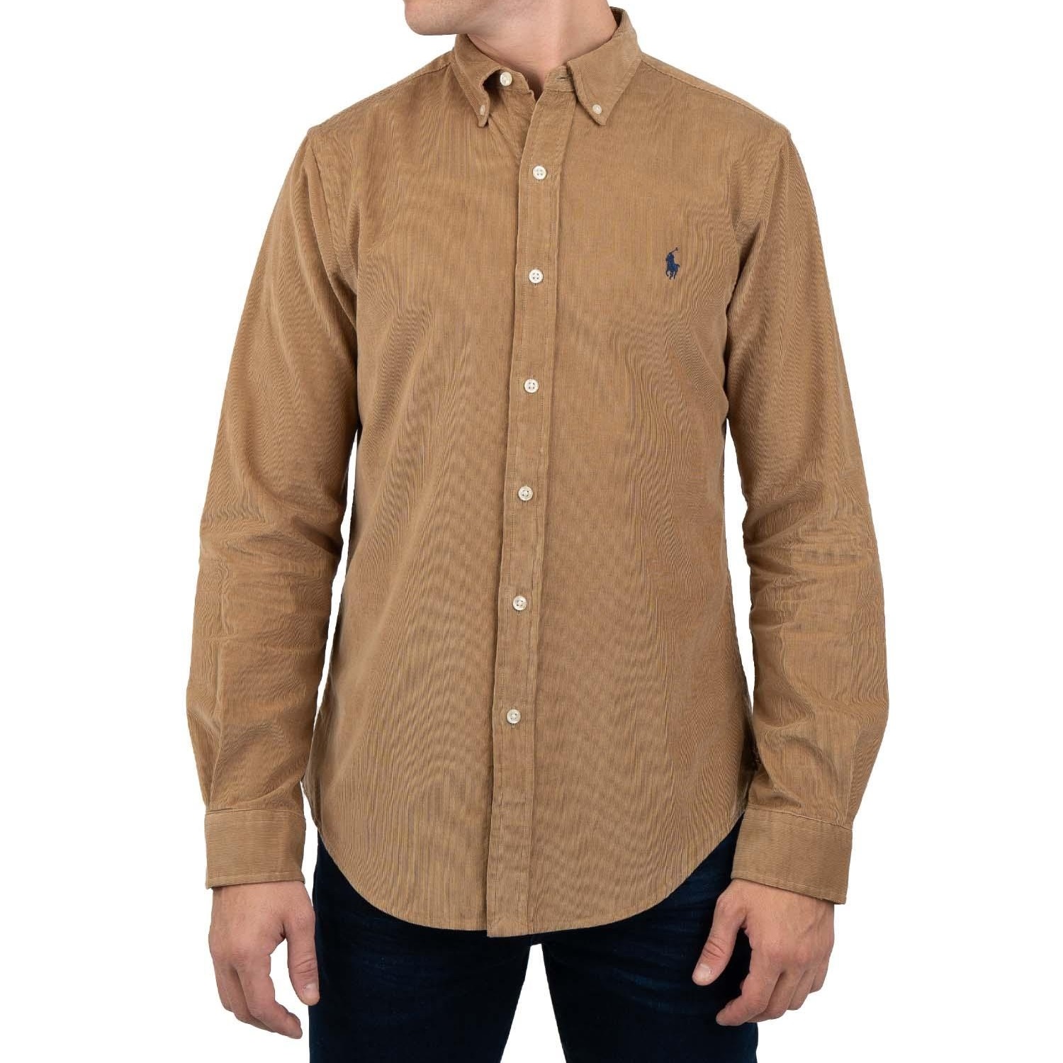 POLO RALPH LAUREN MEN’S SHIRT SLIM FIT BROWN COTTON