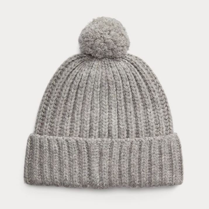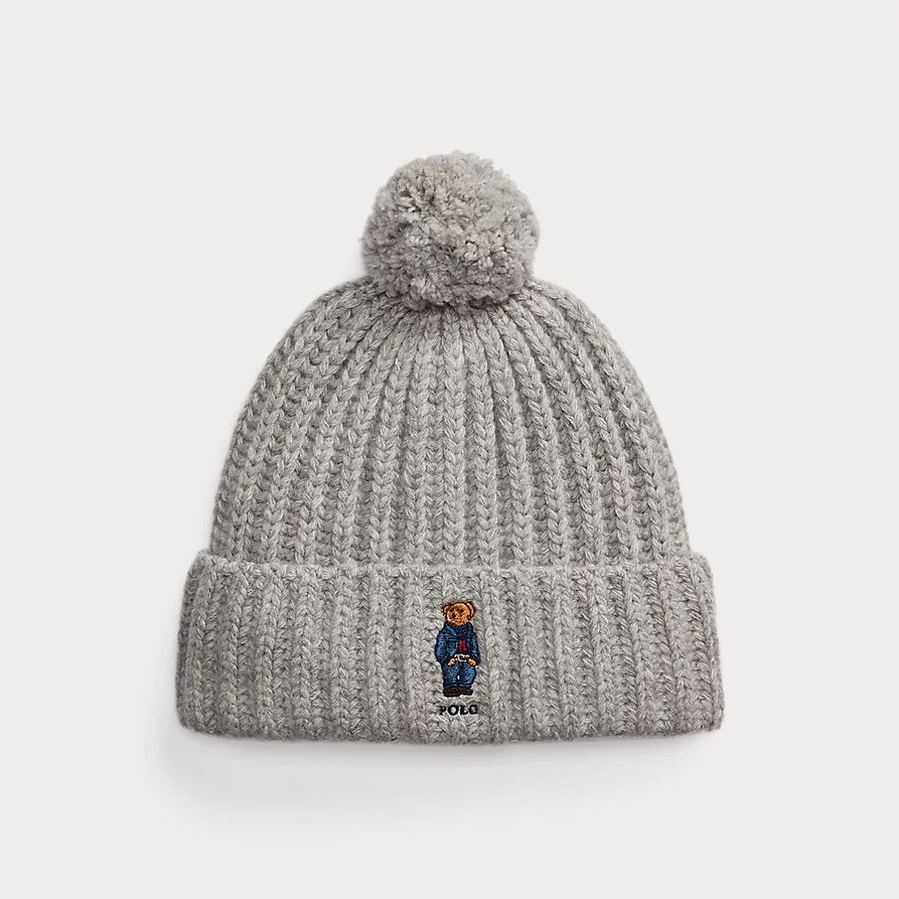 POLO RALPH LAUREN UNISEX BEAR WOOL BLEND POM-POM BEANIE GREY