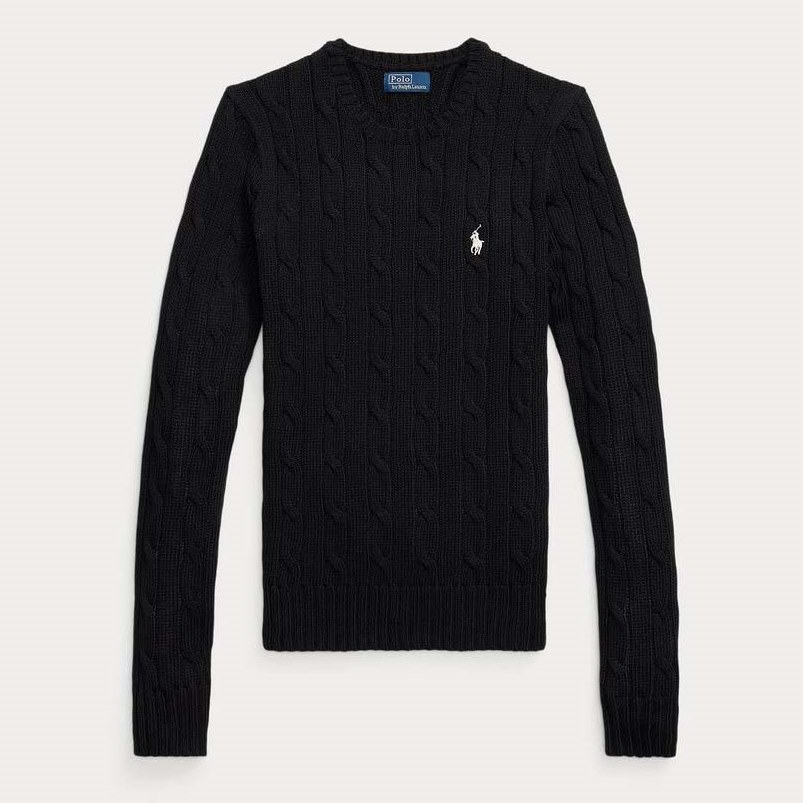 POLO RALPH LAUREN WOMAN CABLE-KNIT COTTON CREWNECK JUMPER BLACK