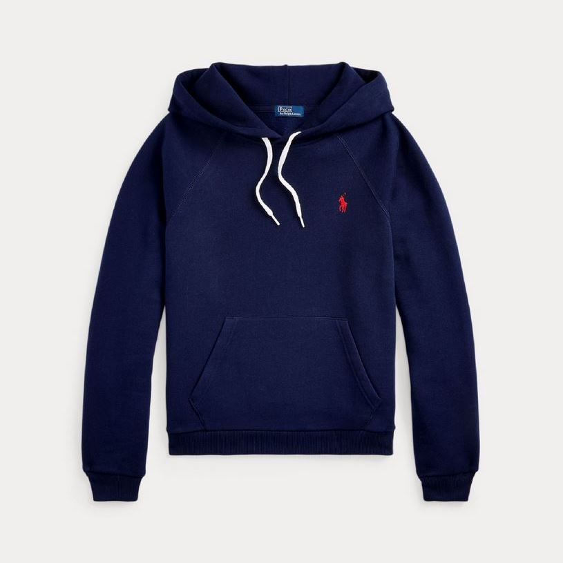 POLO RALPH LAUREN WOMAN FLEECE PULLOVER HOODIE SWEATSHIRT NAVY