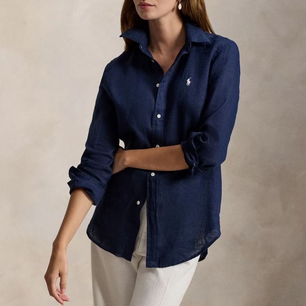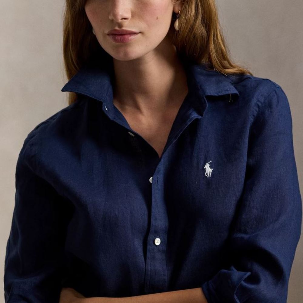 POLO RALPH LAUREN WOMEN’S CLASSIC FIT LINEN SHIRT TIDAL NAVY