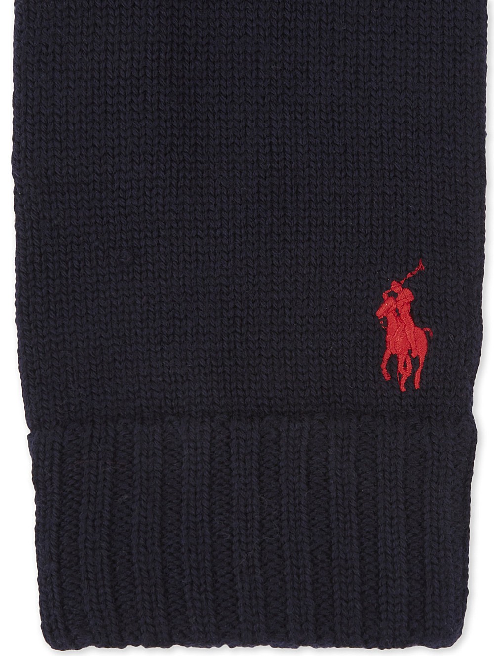 -Ralph Lauren’s signature Pony embroidered on the right glove.