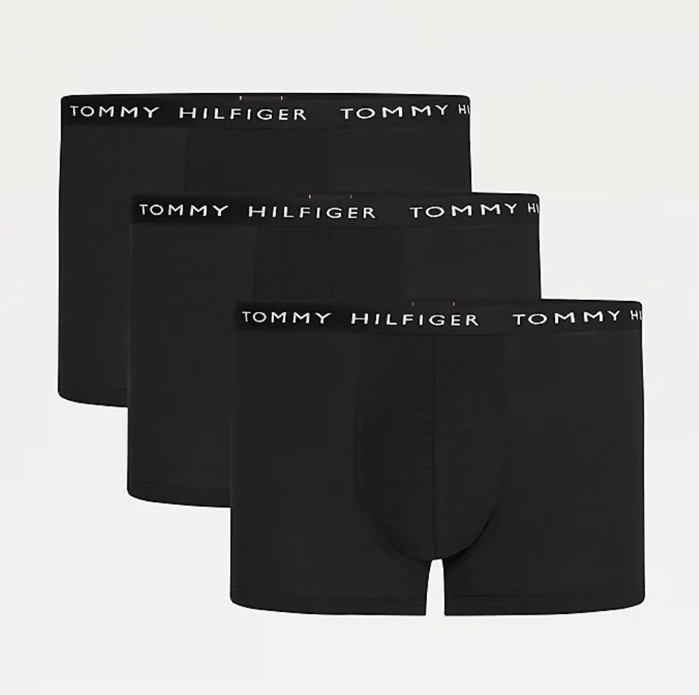TOMMY HILFIGER 3-PACK ESSENTIAL LOGO WAISTBAND TRUNKS BLACK