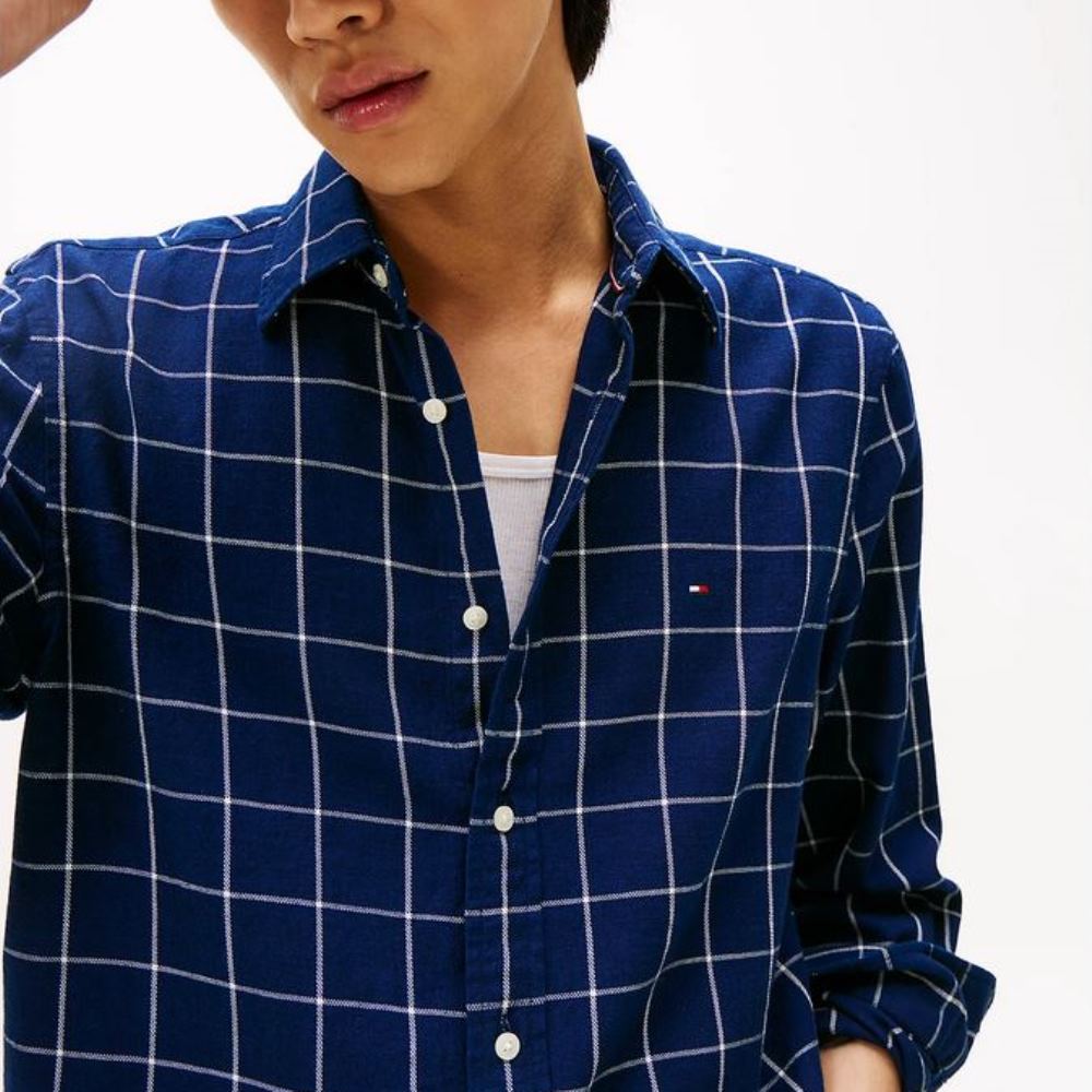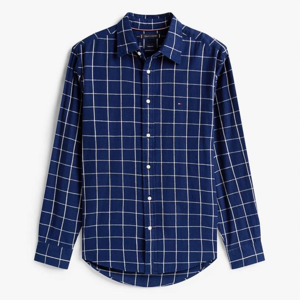TOMMY HILFIGER MAN REGULAR FIT TEXTURED TWILL SHIRT DARK BLUE INDIGO/CHECK