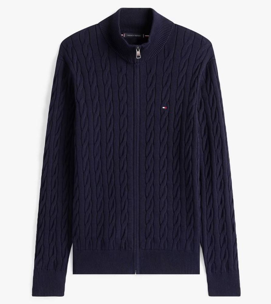 TOMMY HILFIGER MEN CLASSIC COTTON CABLE ZIP THROUGH JUMPER DESERT SKY