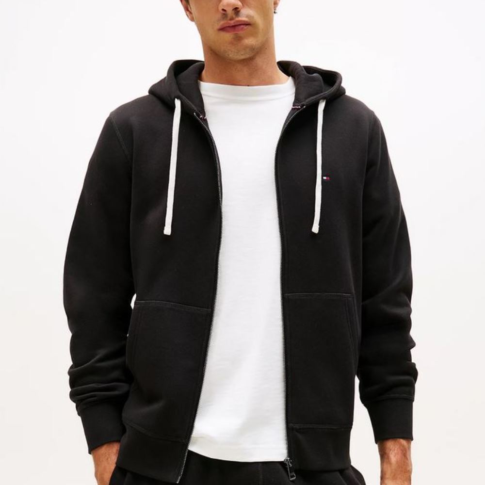 TOMMY HILFIGER MEN FLEECE ZIP THROUGH HOODY BLACK