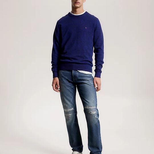 TOMMY HILFIGER MEN PIMA ORGANIC COTTON CASHMERE CREW NECK RF JUMPER BLACK MOULINE