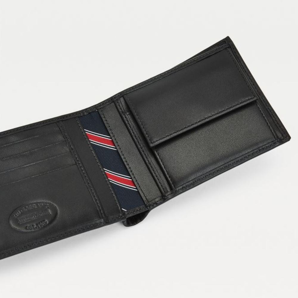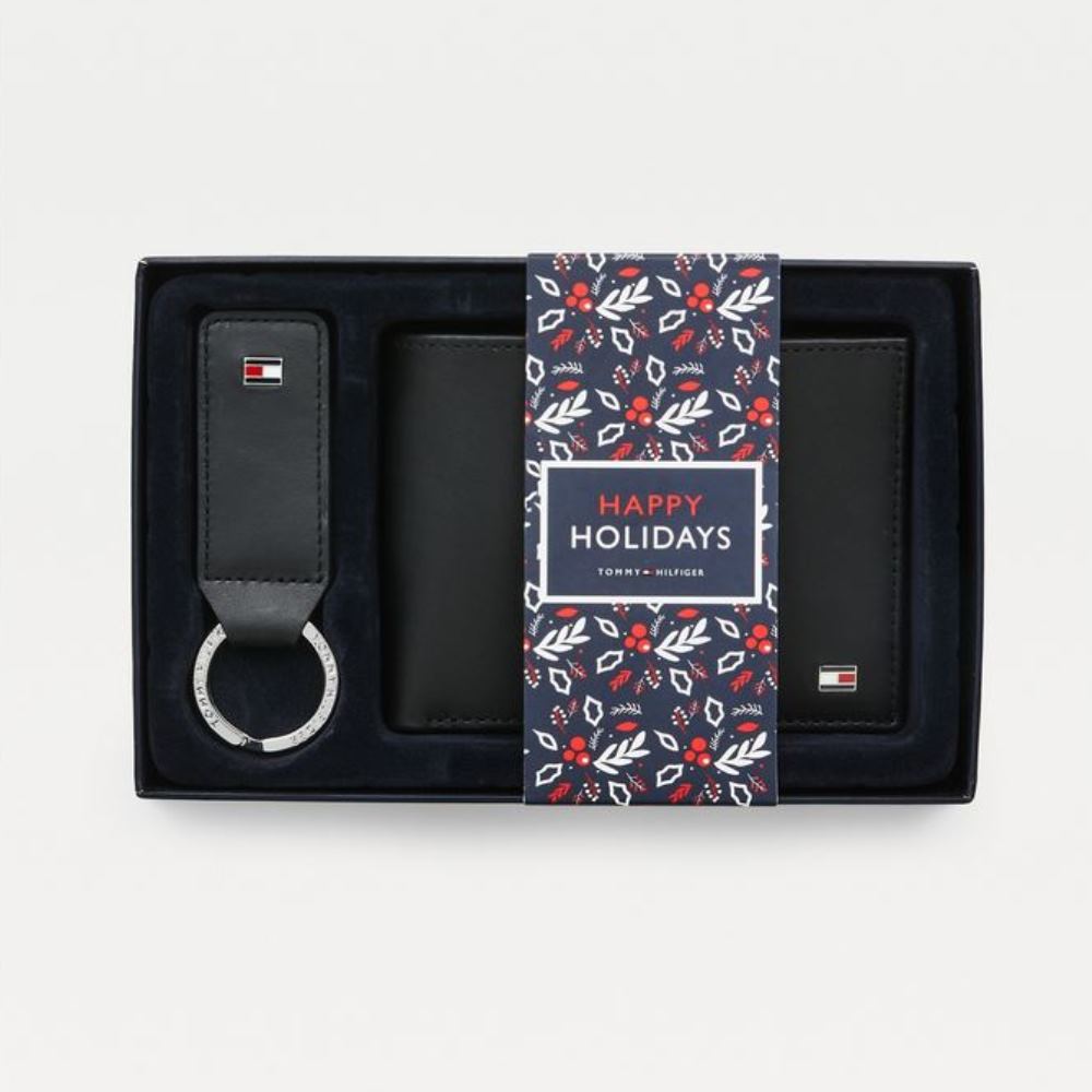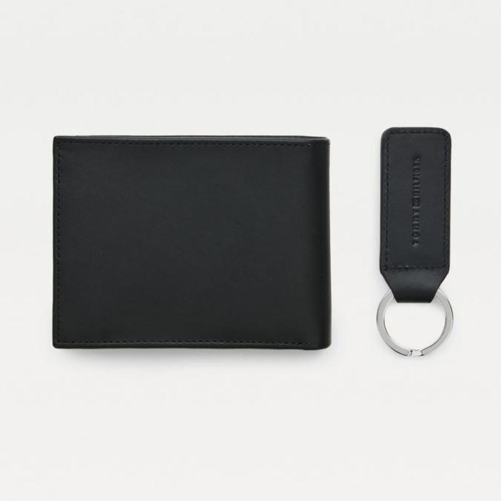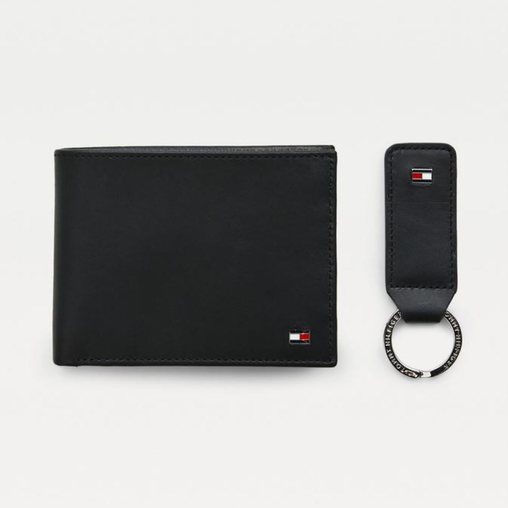 TOMMY HILFIGER MEN’S LEATHER FLAG WALLET & KEYCHAIN ​​SET IN GIFT BOX BLACK