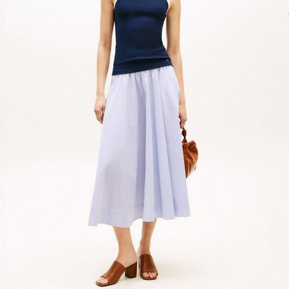 TOMMY HILFIGER POPLIN BRANDED MIDI SKIRT BLUE