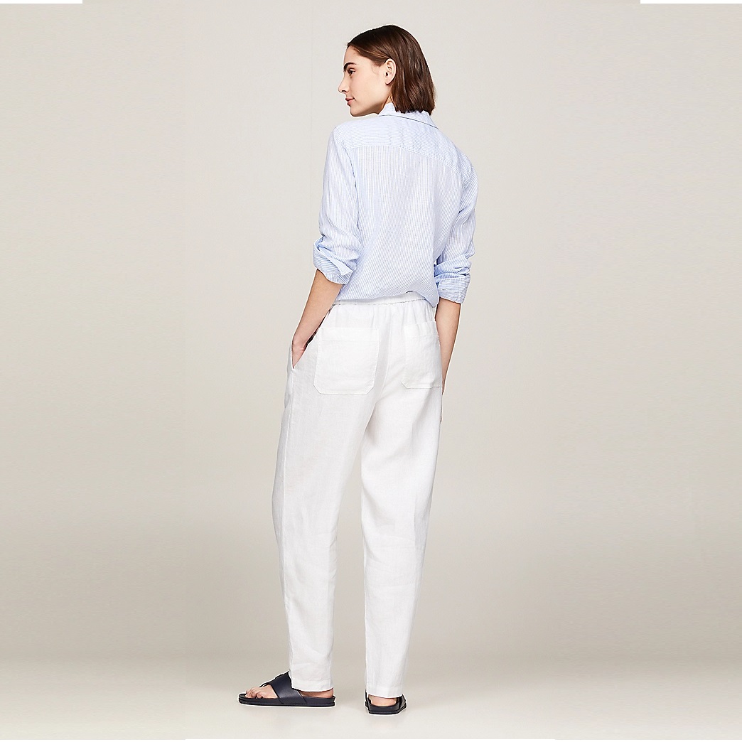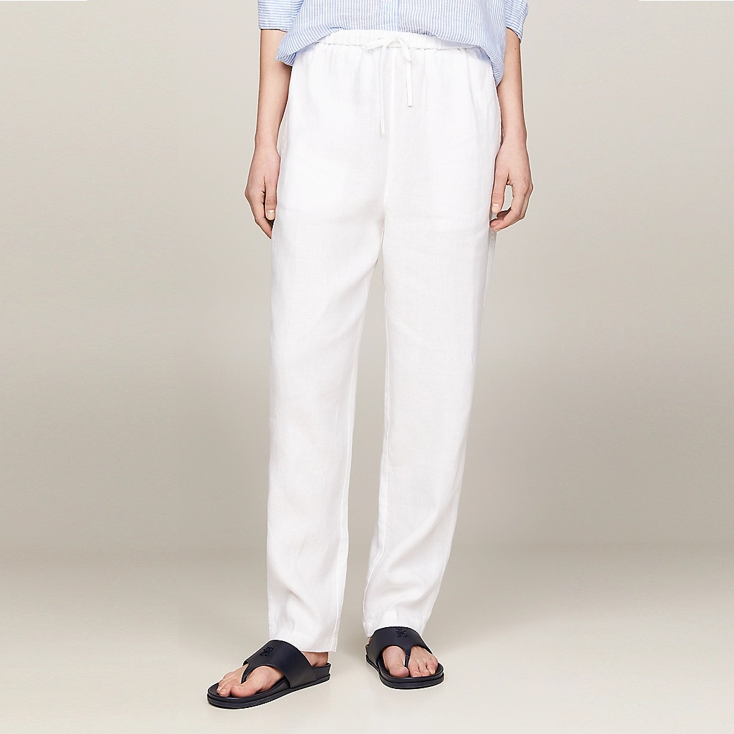TOMMY HILFIGER WOMAN CASUAL TAPERED DRAWSTRING TROUSERS OPTIC WHITE