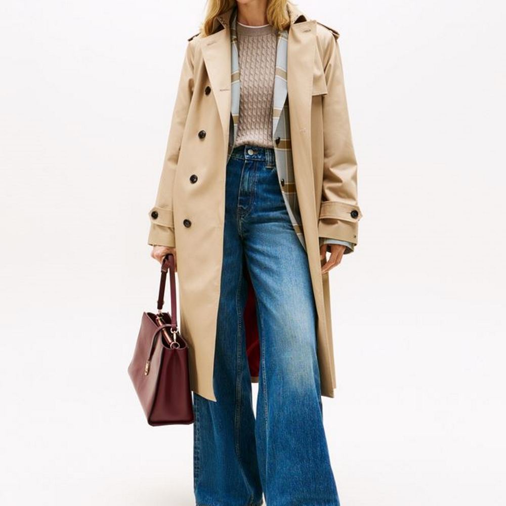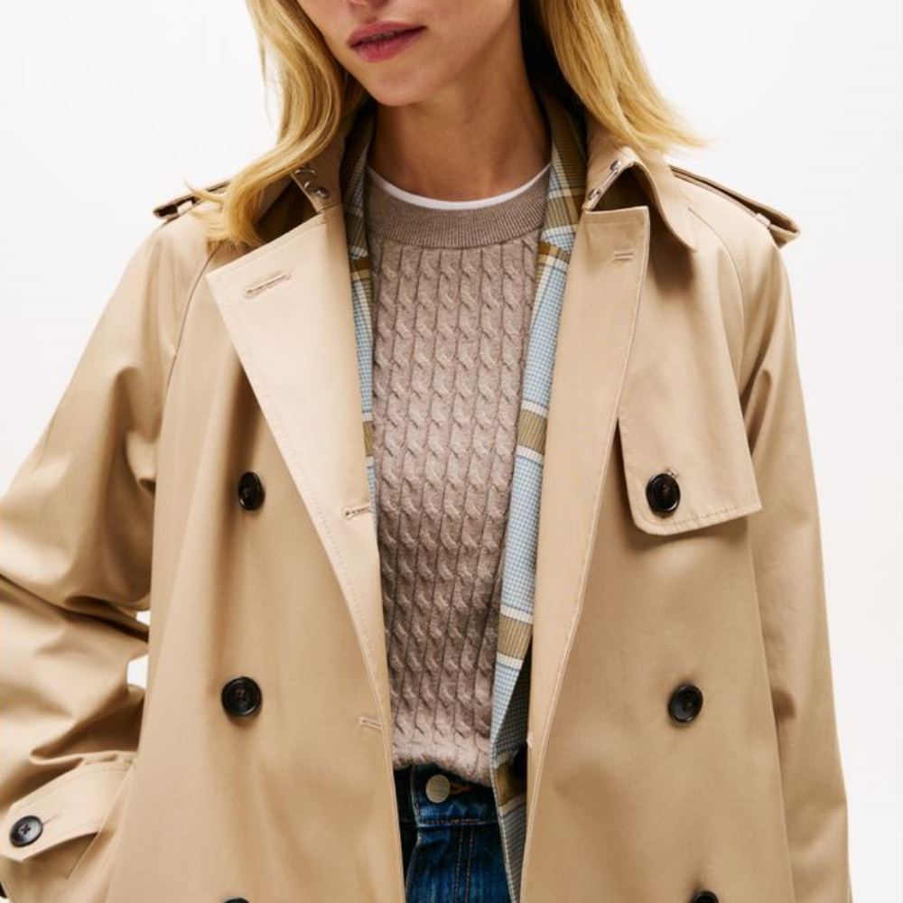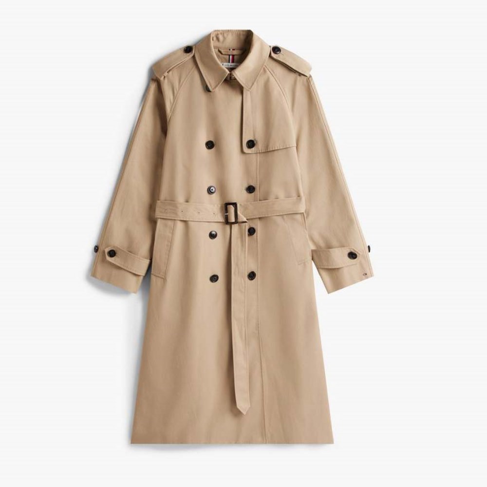 TOMMY HILFIGER WOMAN COTTON DOUBLE BREASTED TRENCH COAT WITH BELT BEIGE
