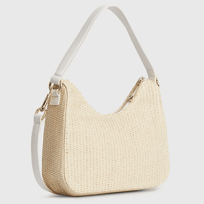 Complete warm-weather outfits with this textured weave shoulder bag, presented in a subtly