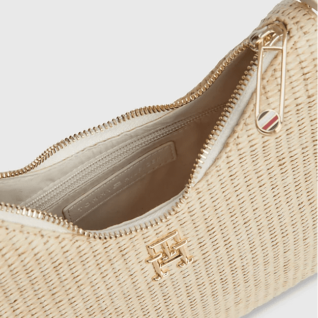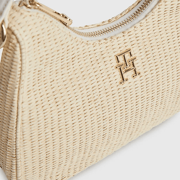 TOMMY HILFIGER WOMAN TEXTURED WEAVE MONOGRAM SHOULDER BAG NATURAL