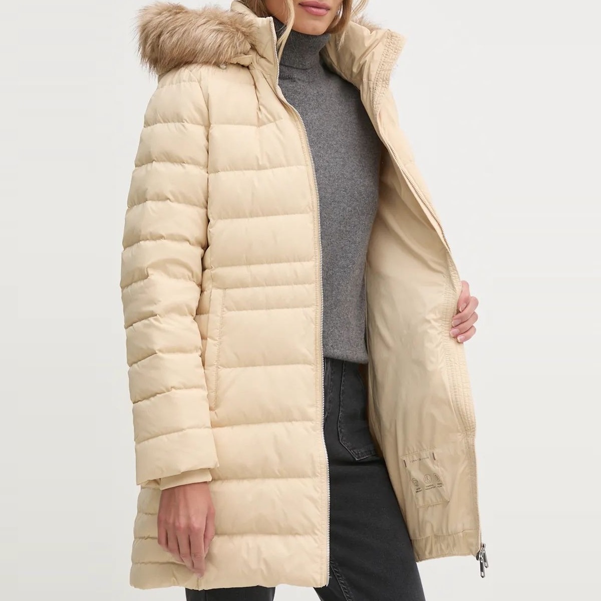 TOMMY HILFIGER WOMAN TH TYRA DOWN COAT WITH FUR NATURAL
