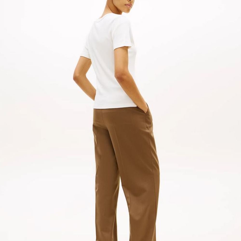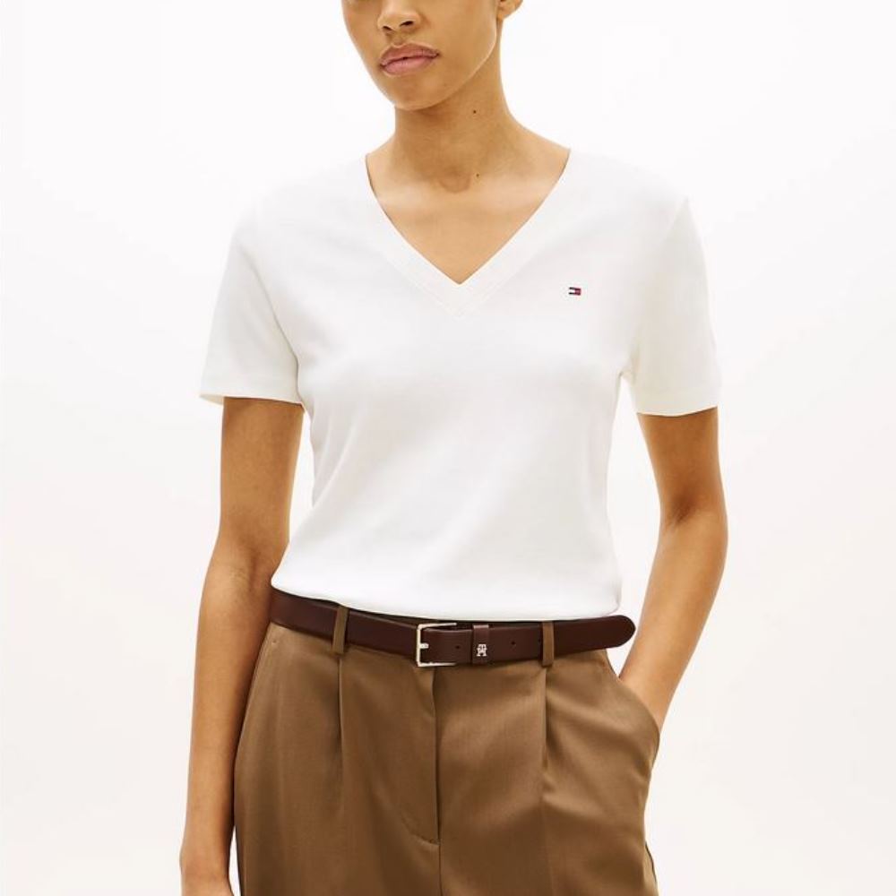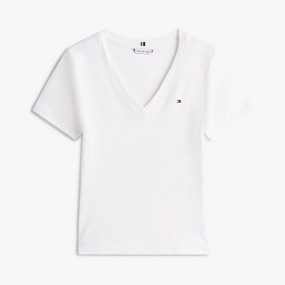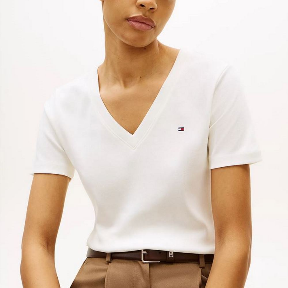 TOMMY HILFIGER WOMAN’S FLAG EMBROIDERY V-NECK SLIM T-SHIRT ECRU