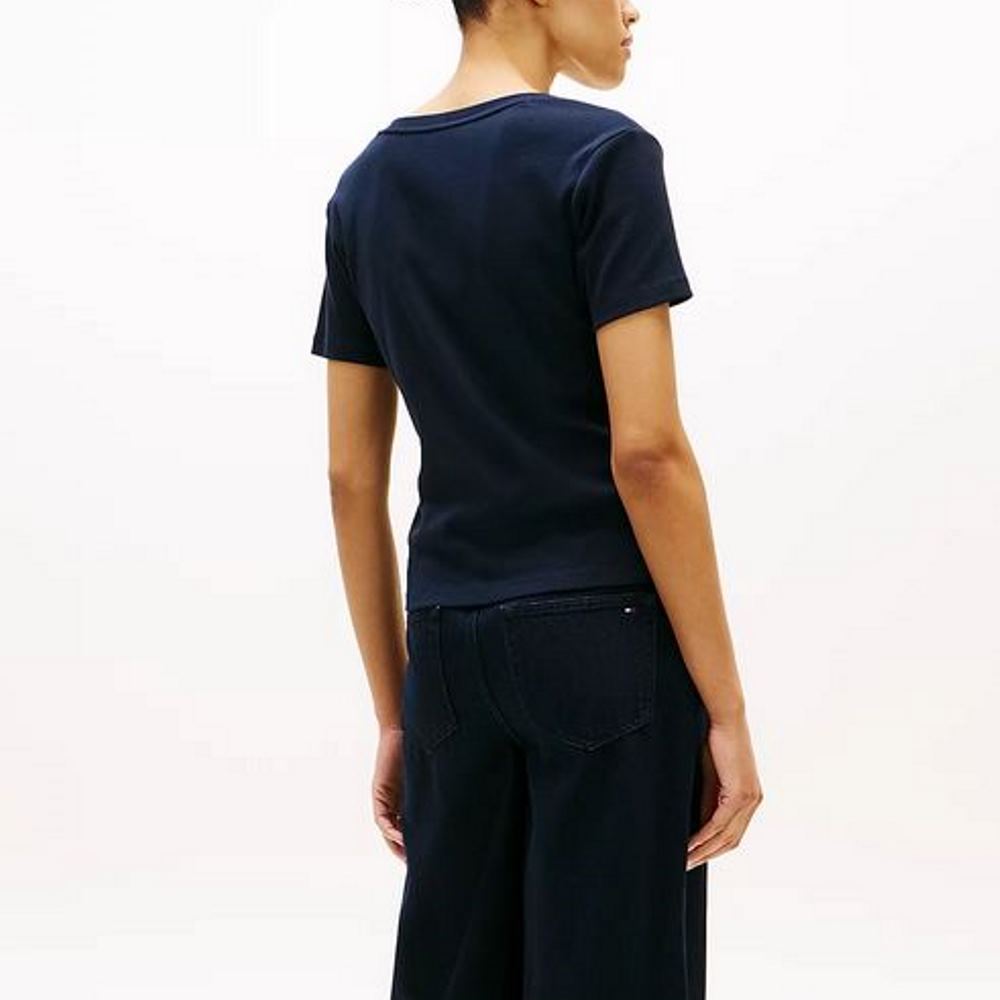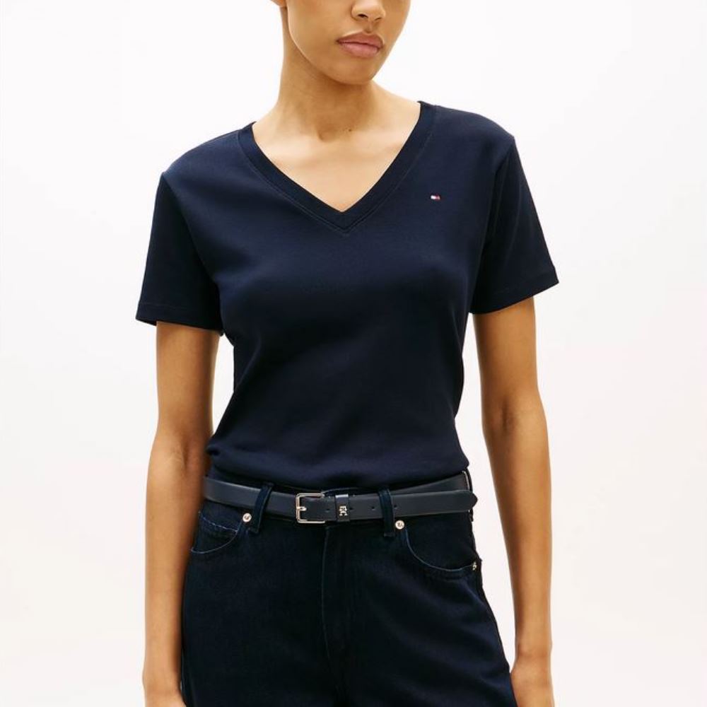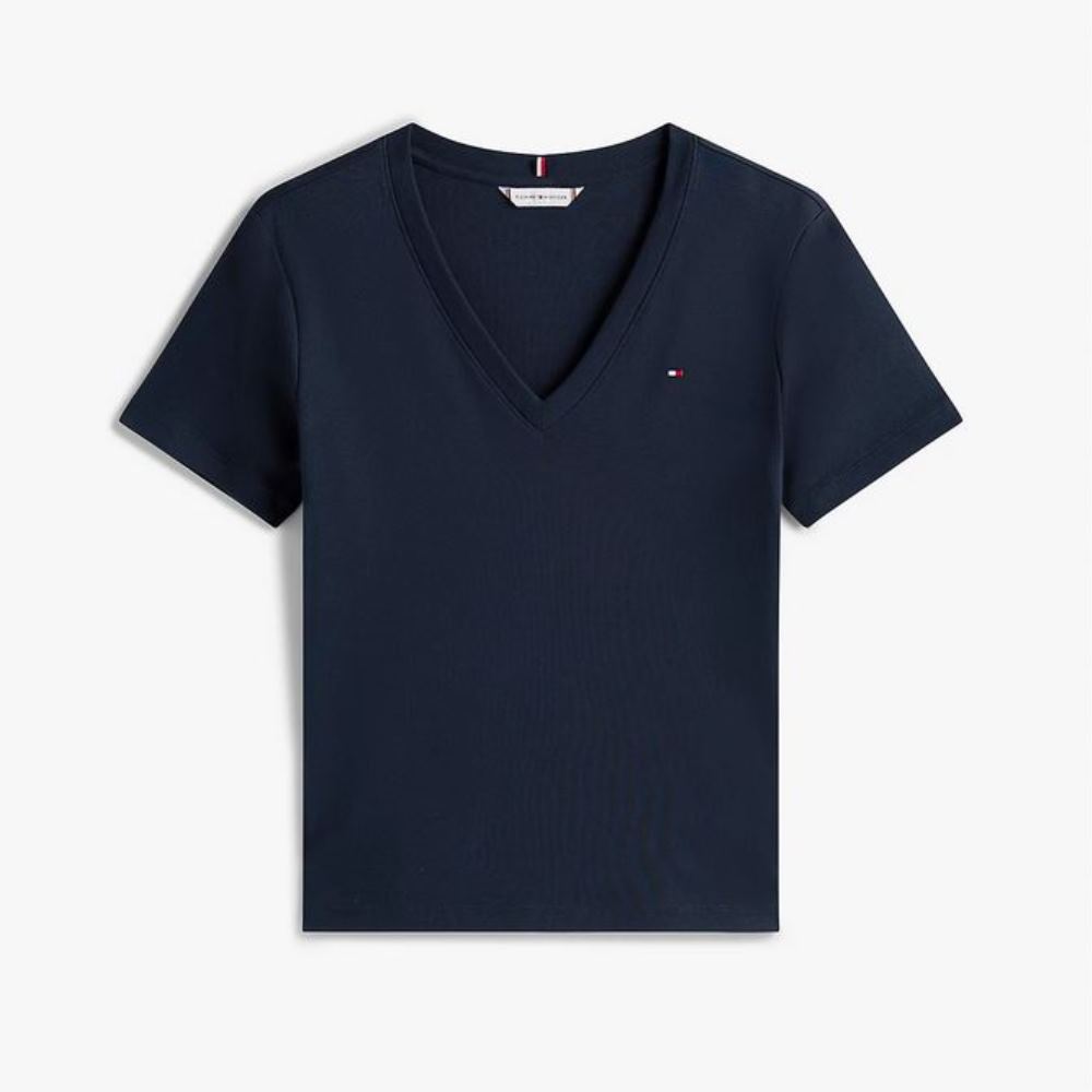 TOMMY HILFIGER WOMAN’S FLAG EMBROIDERY V-NECK SLIM T-SHIRT NOS DESERT SKY