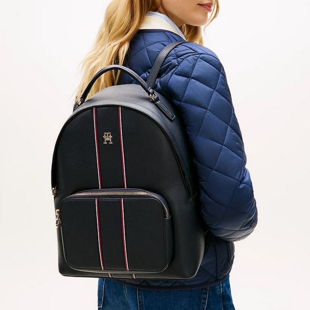 TOMMY HILFIGER WOMAN’S SIGNATURE PEBBLE GRAIN DOME BACKPACK SPACE BLUE
