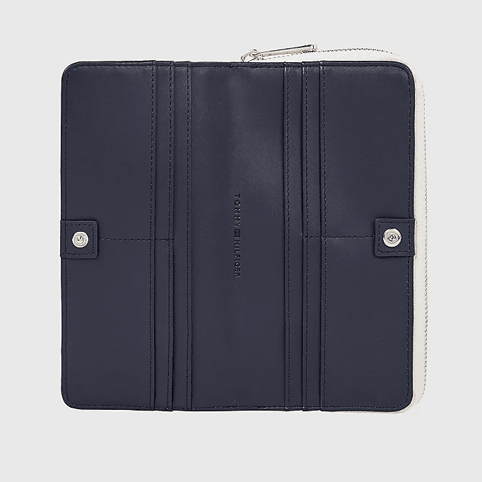 TOMMY HILFIGER WOMEN LARGE ZIP-AROUND ROPE EMBOSSED WALLET WEATHERED WHITE