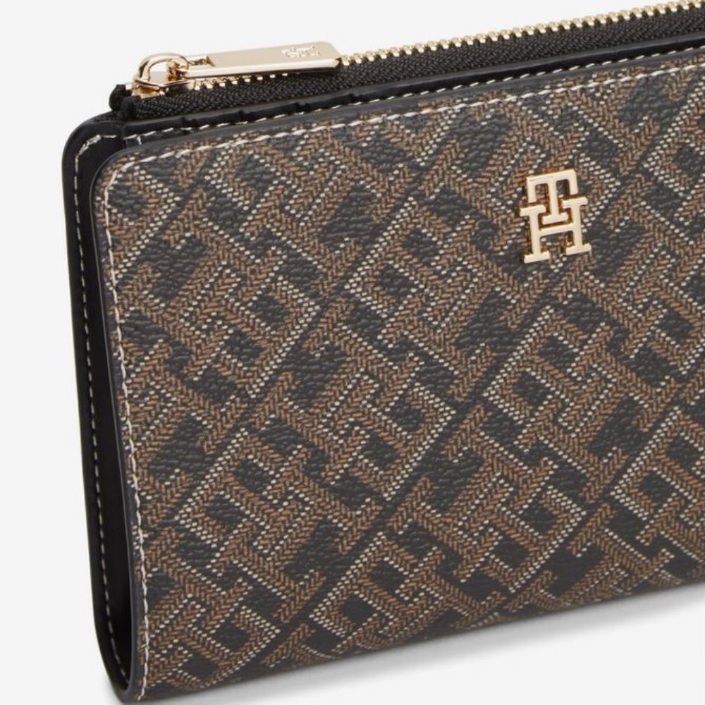 TOMMY HILFIGER WOMEN’S ICON TH MONOPLAY BIFOLD WALLET MIX BROWN