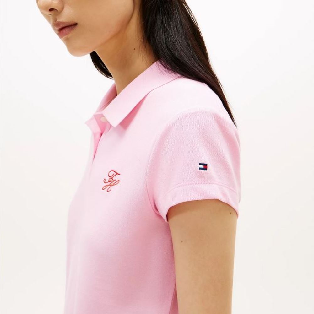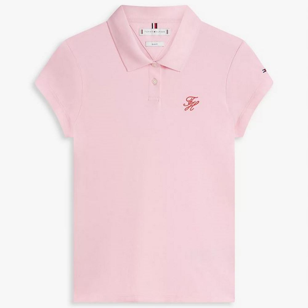 TOMMY HILFIGER WOMEN’S TH SCRIPT SLIM SS POLO CLASSIC PINK