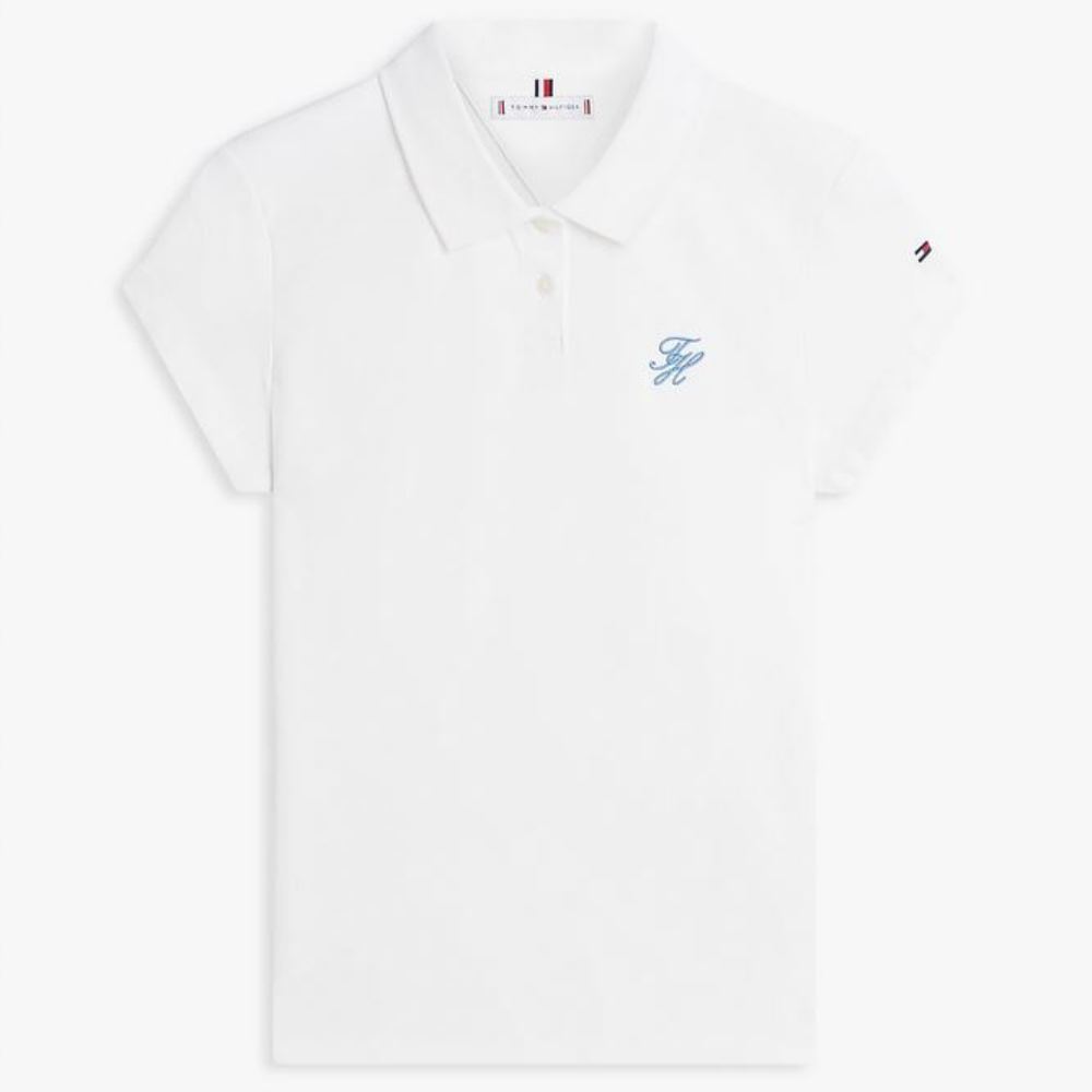 TOMMY HILFIGER WOMEN’S TH SCRIPT SLIM SS POLO ECRU