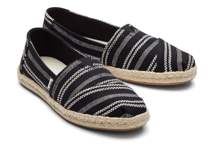 TOMS WOMAN ALPARGATA ROPE ESPADRILLES BLACK GLOBAL STRIPE