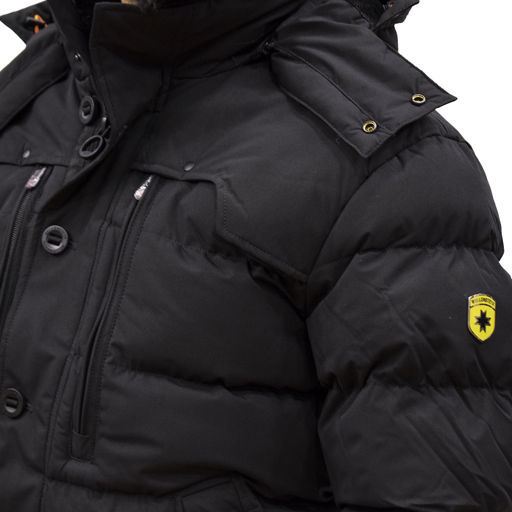 and detachable hood. The slightly longer cut jacket has lateral waist